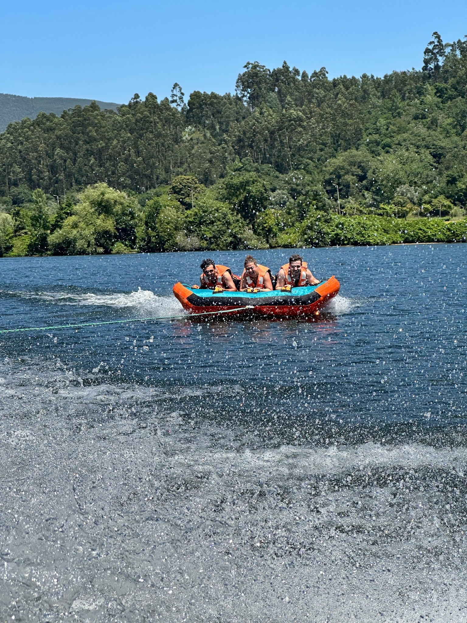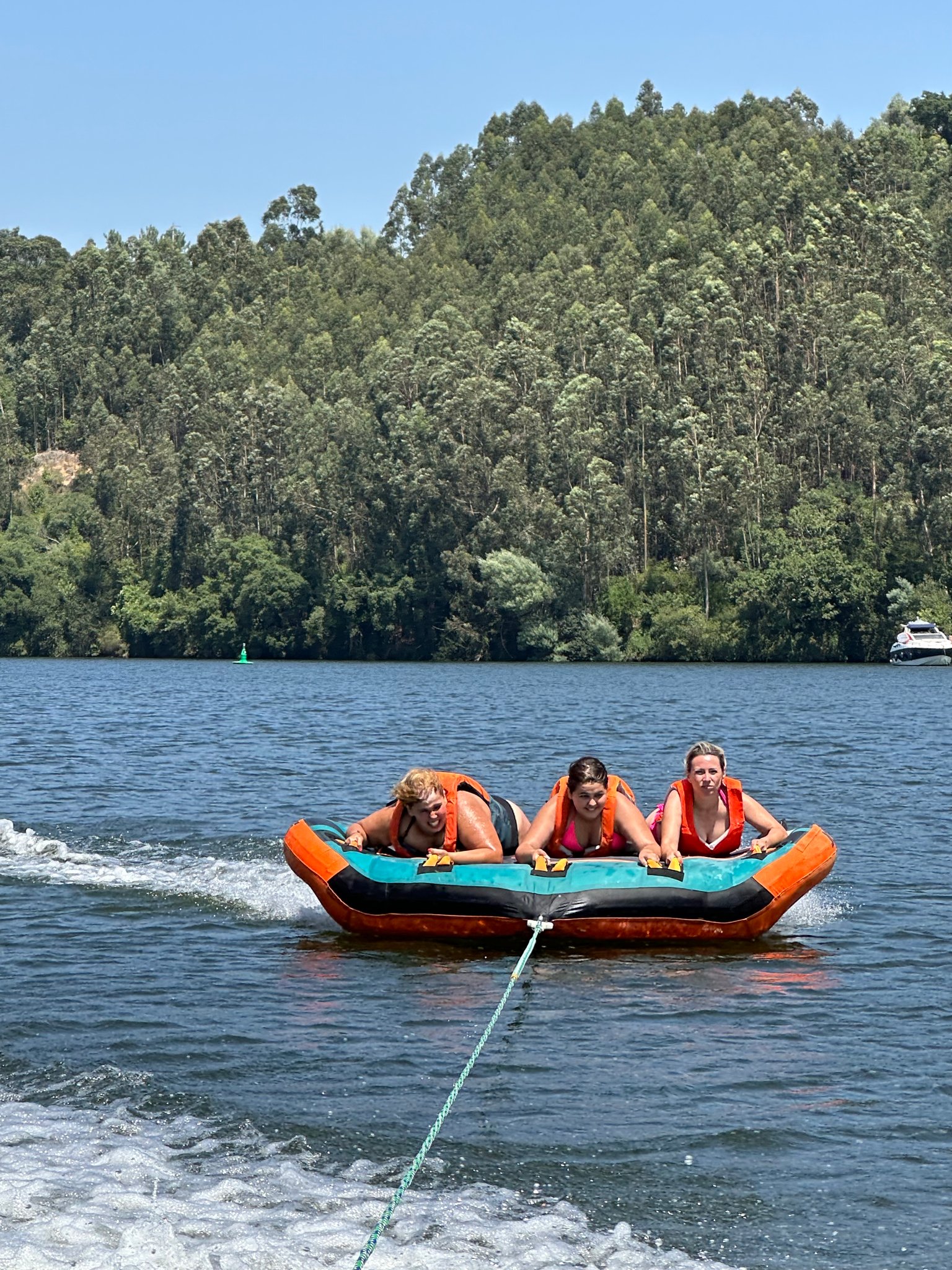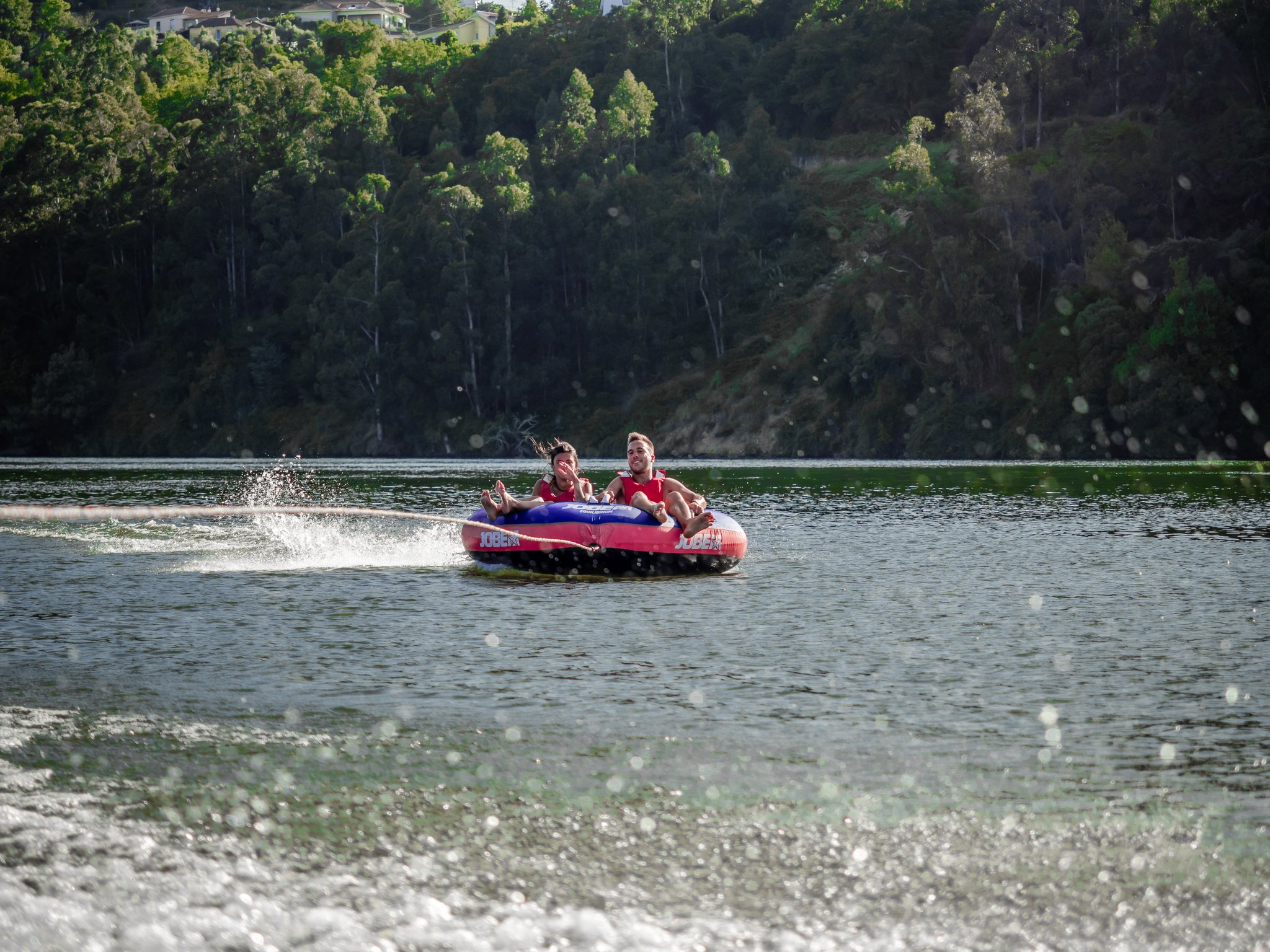 Deitado ou sentado em cima de uma boia só tem de esperar ser puxado por uma lancha rápida!