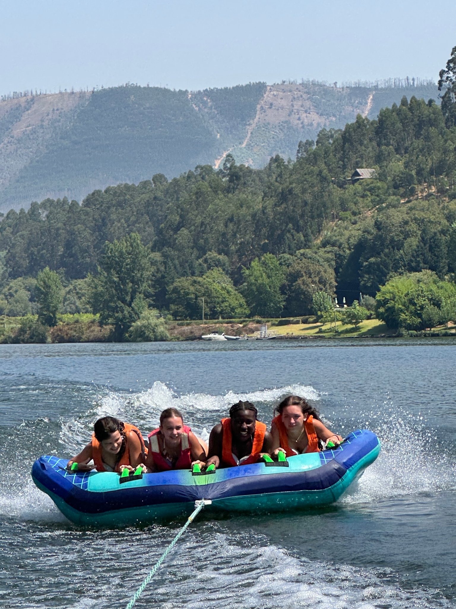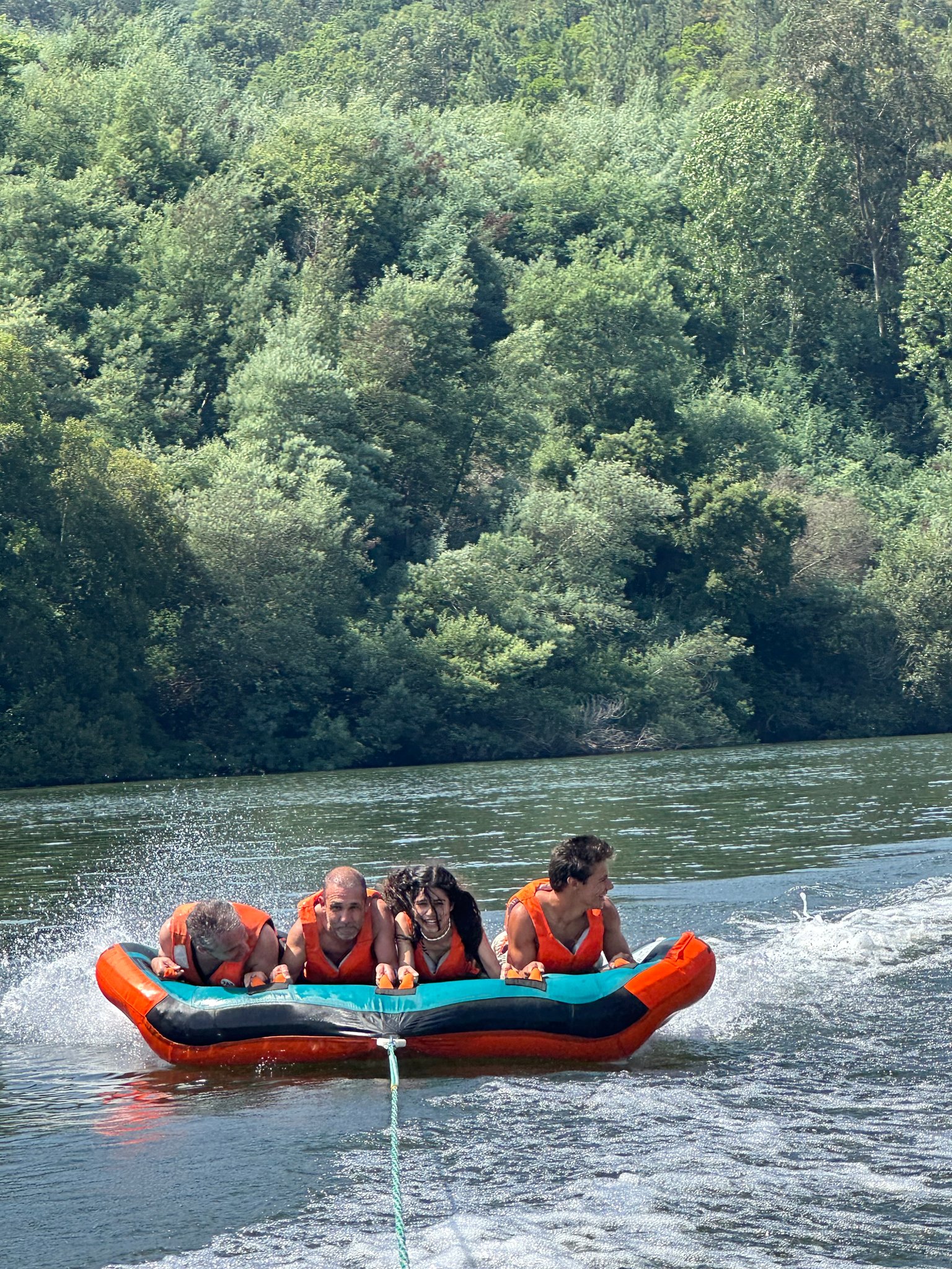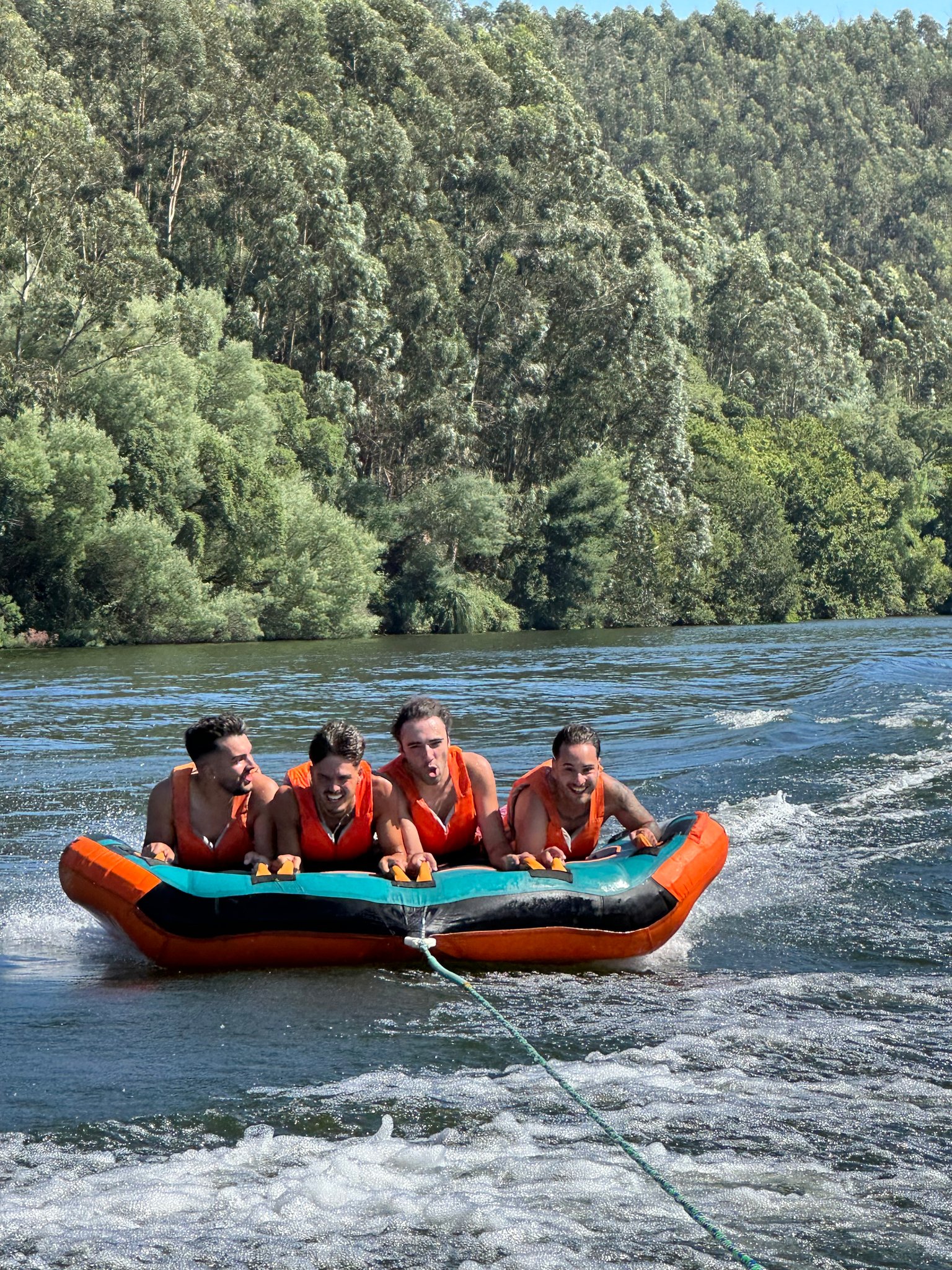 Deitado ou sentado em cima de uma boia só tem de esperar ser puxado por uma lancha rápida!